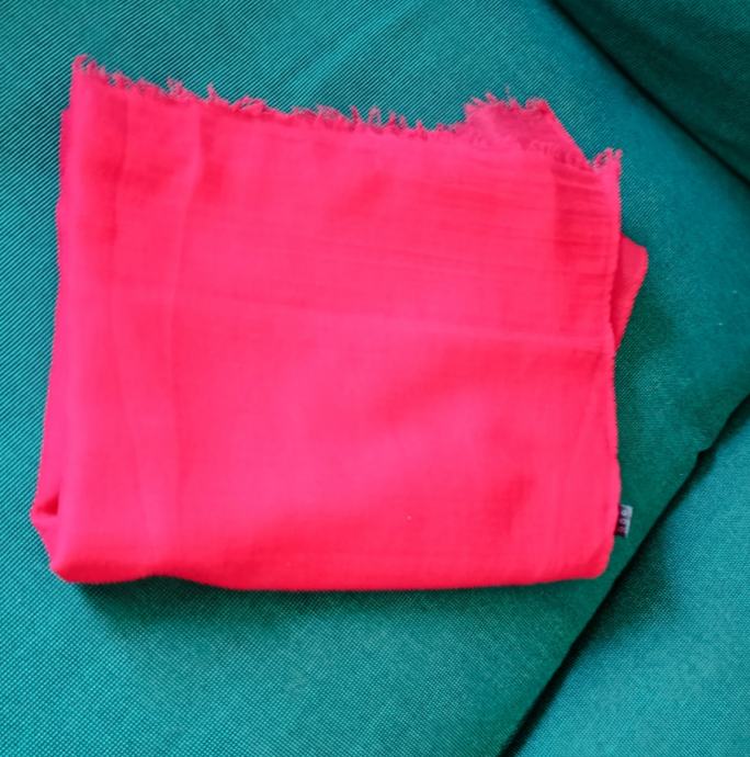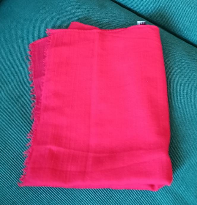 Atraktivni šal u intenzivnoj koraljnoj boji sa malenim resicama. Izgledom jako podsjeća na Frenckenberger-ov kašmirski šal. Nježna i ugodna tkanina ovog šala je mješavina pamuka i viskoze u omjeru 40:60%.
