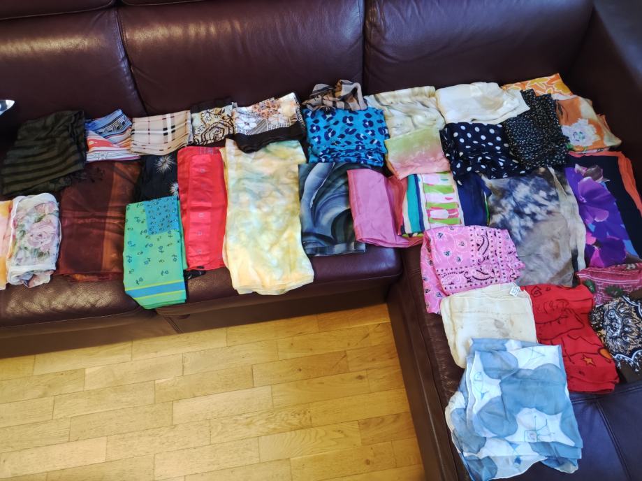 Svilene i druge marame 32 komada, raznih dezena i veličina.