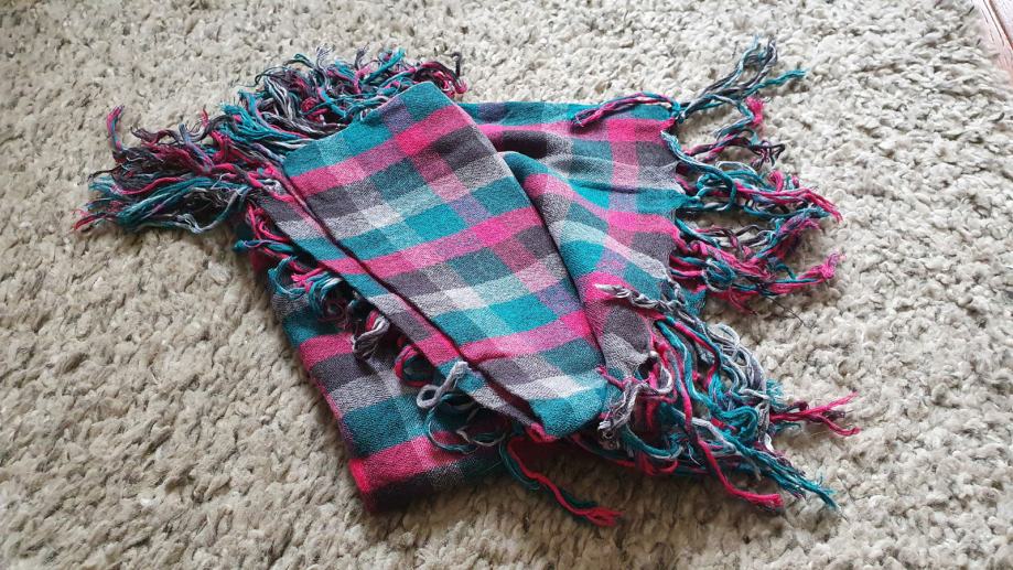 Prodajem kariranu maramu tirkizno, roze boje. Korištena svega nekoliko puta, no odlično očuvana.