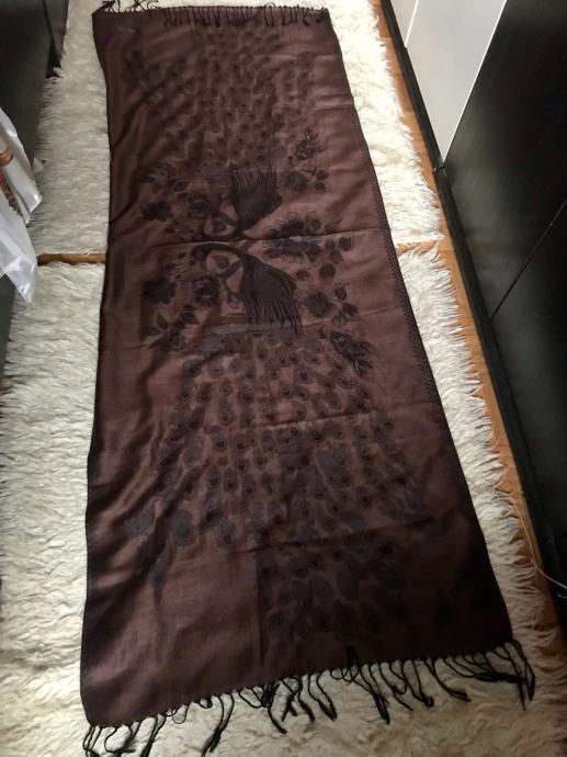 - Posebna pašmina boje čokolade , sa uzorkom pauna , ČISTI KAŠMIR … za 8 eu