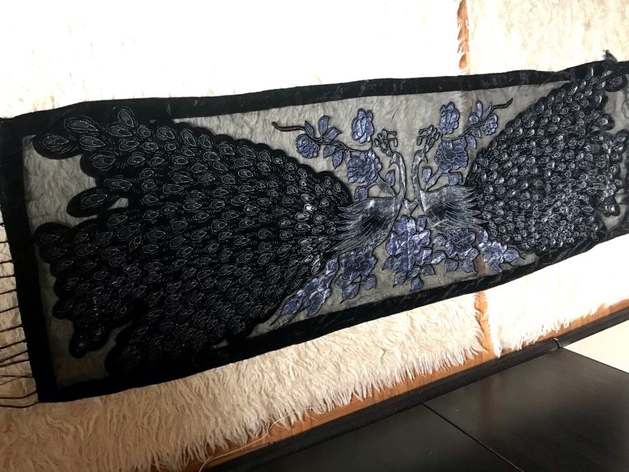 -Veliki šal od tankog crnog pliša i tila sa sivo ljubičastim dezenom, uživo prekrasan, 154/51 cm … 8 eu