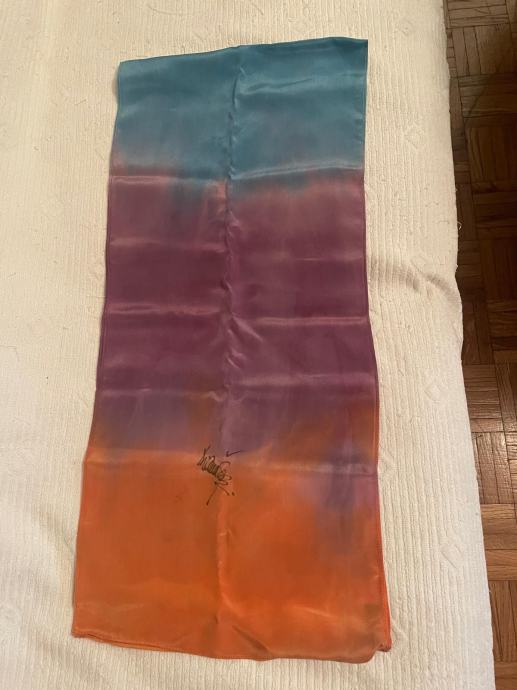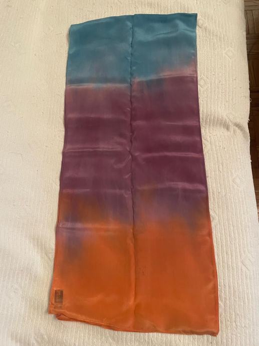 Zenski svileni sal, nov, nekoristen, bez etikete i rucno oslikan. Dimenzije 30 x 125 cm.