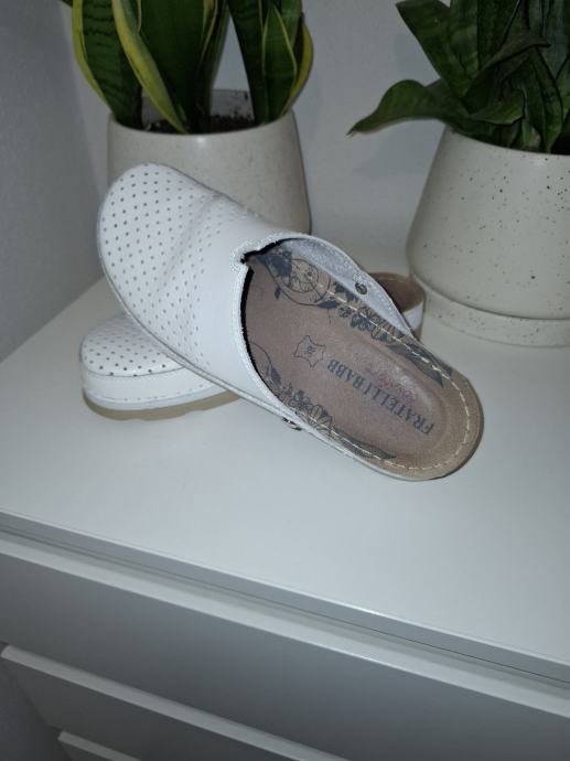 Natikače su od prave kože, jako mekane i udobne, kao nove su, meni ipak velike.Nošene 3/4 puta u zatvorenom prostoru vel 38, gazište 25 cm. Troškovi slanja na Boxnow u cijeni