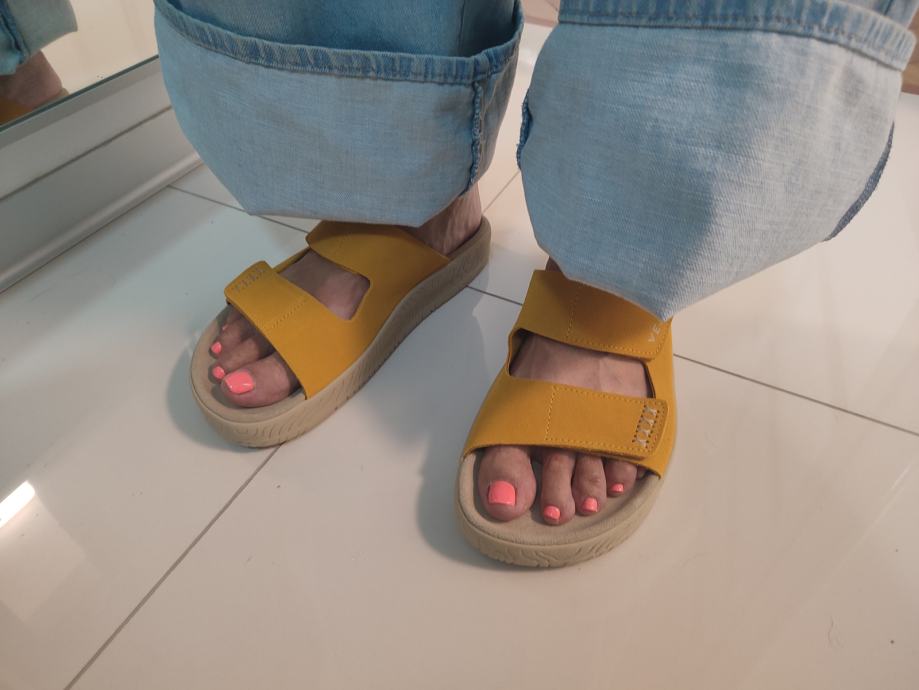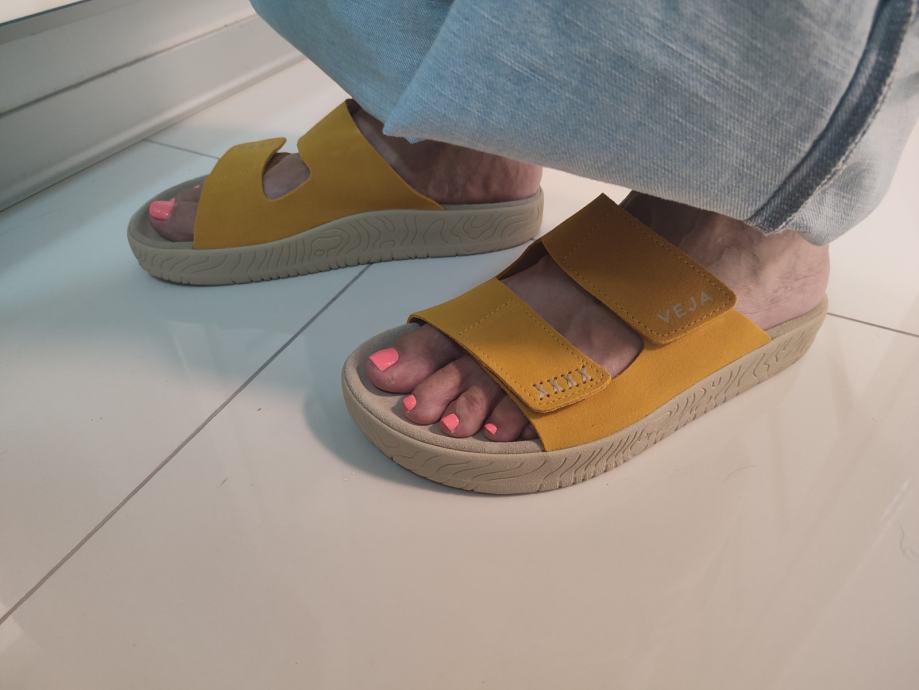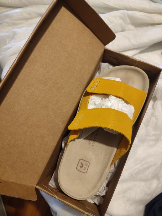 Prodajem ženske natikače VEJA, broj 41, žuto-narančasta boja, podesive na čičak, jednom obuvene, prodajem jer su mi preširoke.