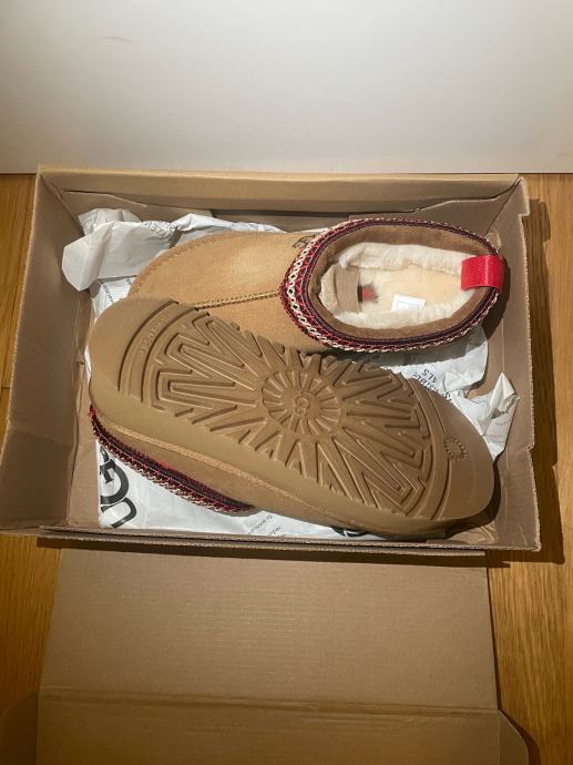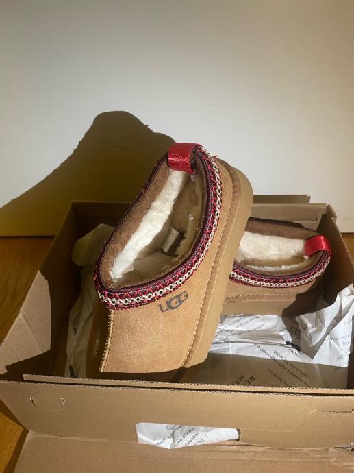 Potpuno nove Uggs papuče veličine 38 s originalnom etiketom. Udobne kožne papuče s mekanim toplim krznom iznutra idealne za hladnije dane. Klasični Uggs dizajn s dekorativnom trakom oko ruba i prepoznatljivim đonom.