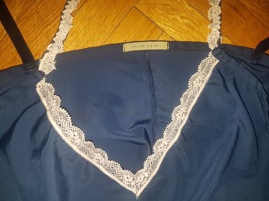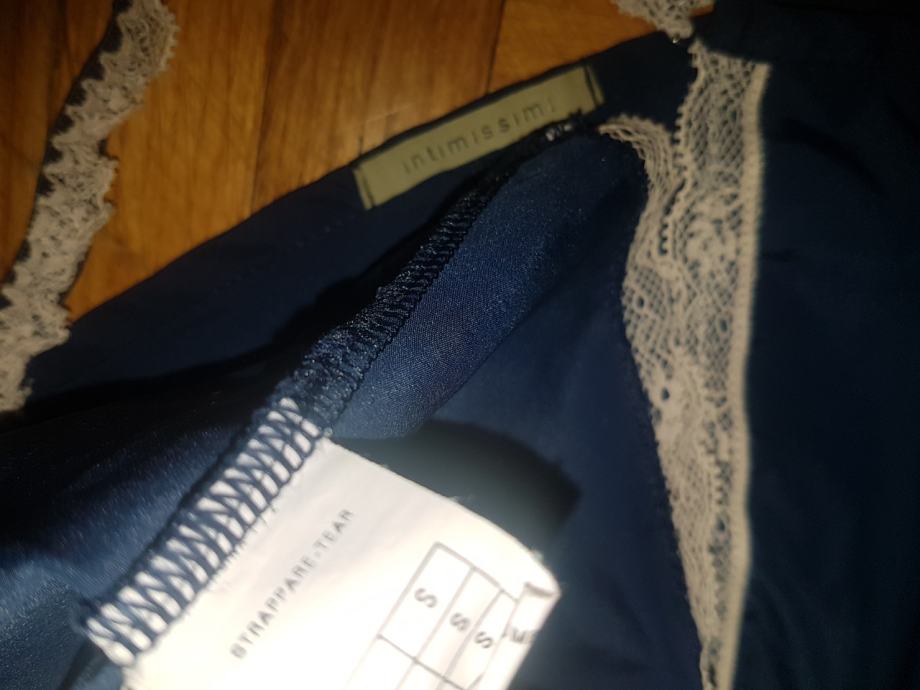 Skinny spavačica , potkošulja , negliže vel S ..izuzetno lagan materijal kao svila , boja ljubičasto-plava, roza čipka na bretelima- ORIGINAL stanje izvrsno