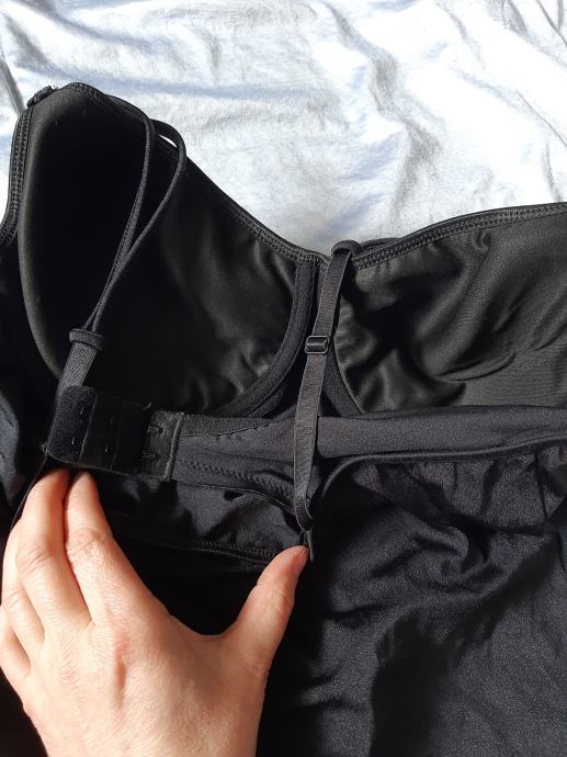 Crna rastezljiva potkošulja sa košaricama. Vrlo udobna i jako lijepo stoji. Nošena par puta bez ikakvih oštećenja, kao nova. Vel. M