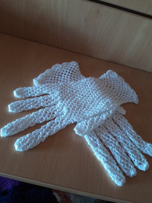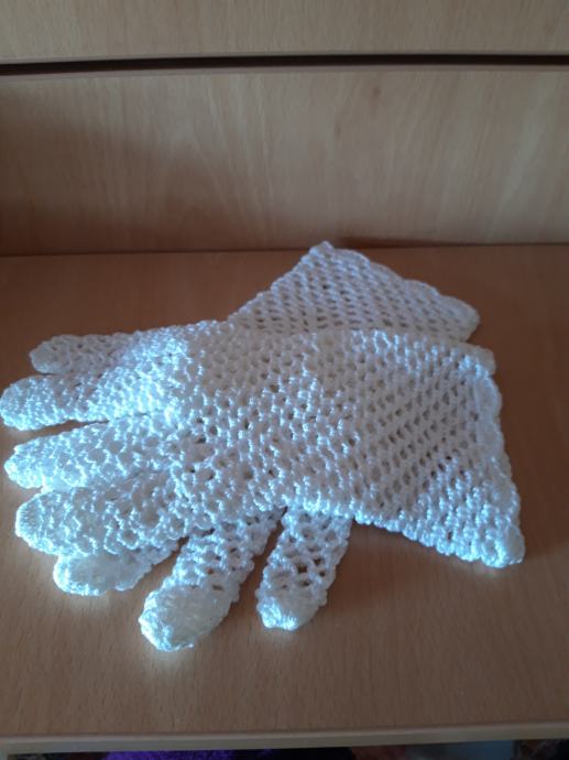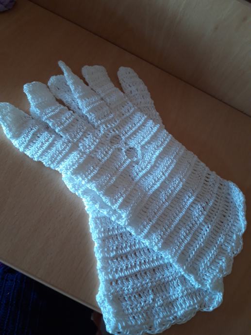 Ručno heklane damske rukavice od pamućnog bijelog konca.