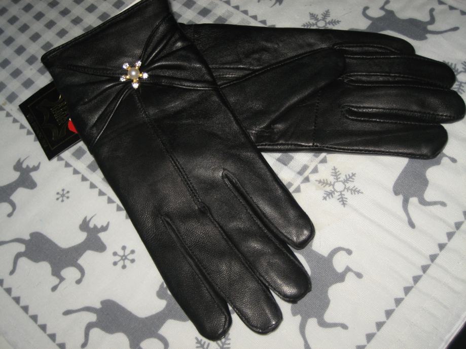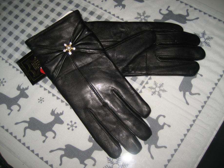 PRAVA KOŽA CRNE RUKAVICE VEL. S I VEL. L - NOVO