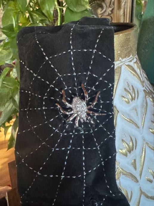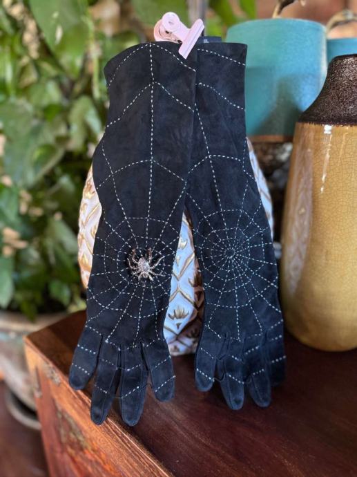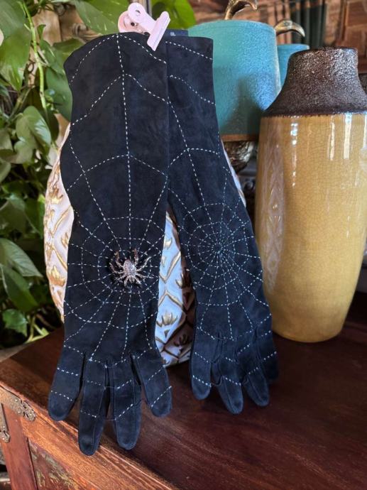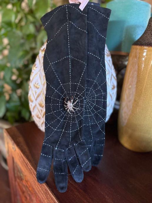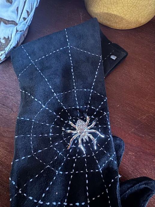 Rukavice s vezom paukove mreže i brošem s paukom.