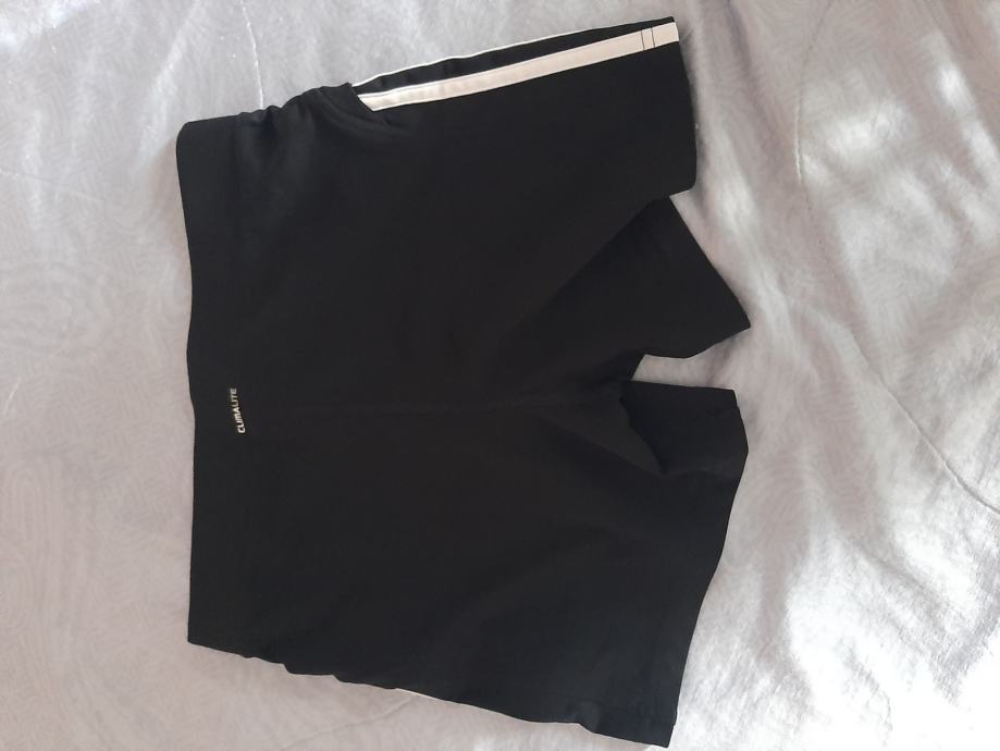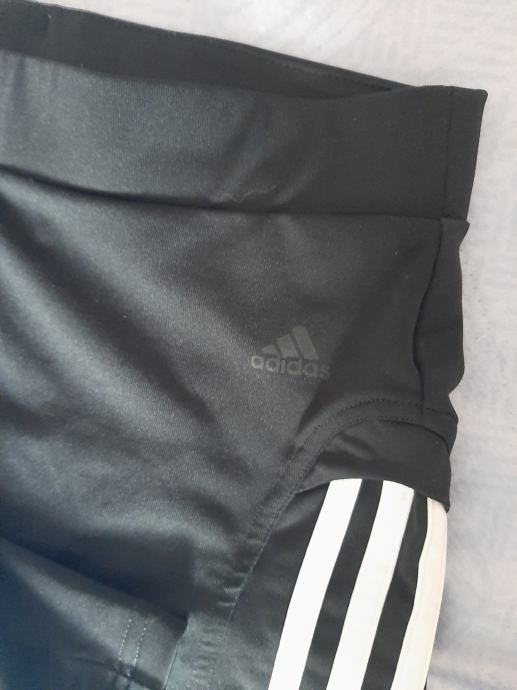 Crne ženske kratke tajice Adidas, elastične. Nošene vrlo kratko. Bez ikakvih oštećenja. Piše vel. 176, ali može bez problema i S.