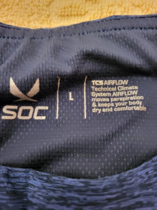 Prodajem očuvane tajice, tamno boje, vel. L, marke SOC . Mjere: širina otvora oko struka koji je od gume 35cm, dužina nogavice s vanjske 75cm, dužina otvora nogavice na dnu je 16cm. Materijal je prozračan sa sistemom da drži da su tajice uvijek suhe i drže da vam uvijek bude udobno.