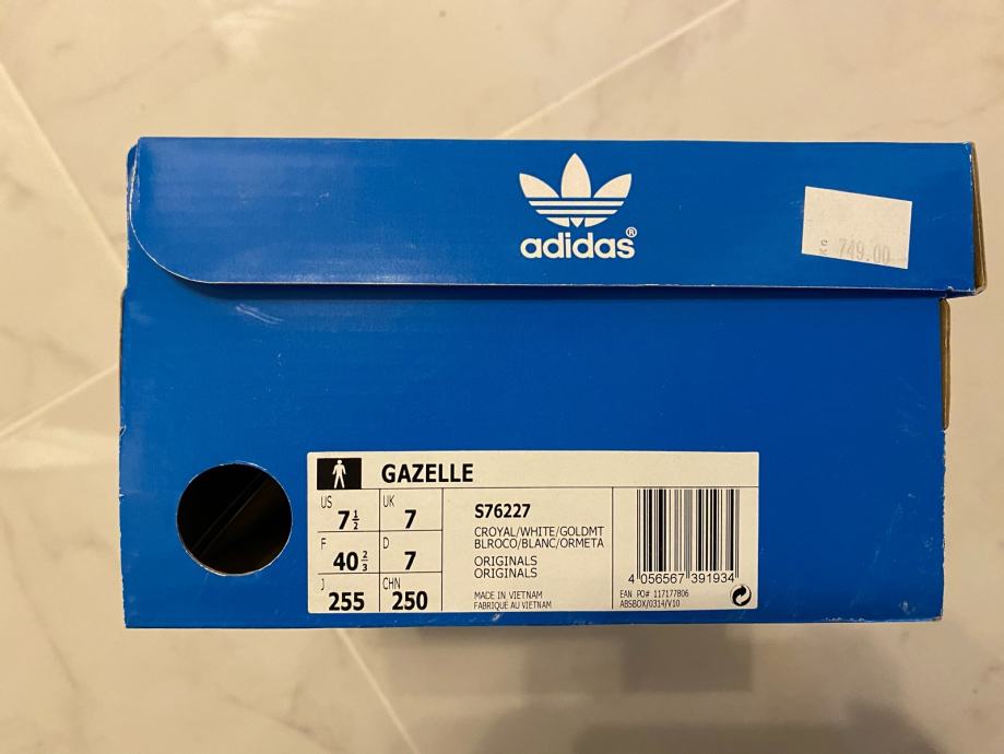 Prodajem nove gazelle adidas plave tenise. Broj 40 2/3. Nosene svega 2 puta jer su premale. Original kutija i jos jedan par znirana ide uz njih. Tenisice nisu uopce oštećene, plaćene 750,00 hrk. Preuzimanje je moguće osobno ili slanjem preko pošte/ Tiska.