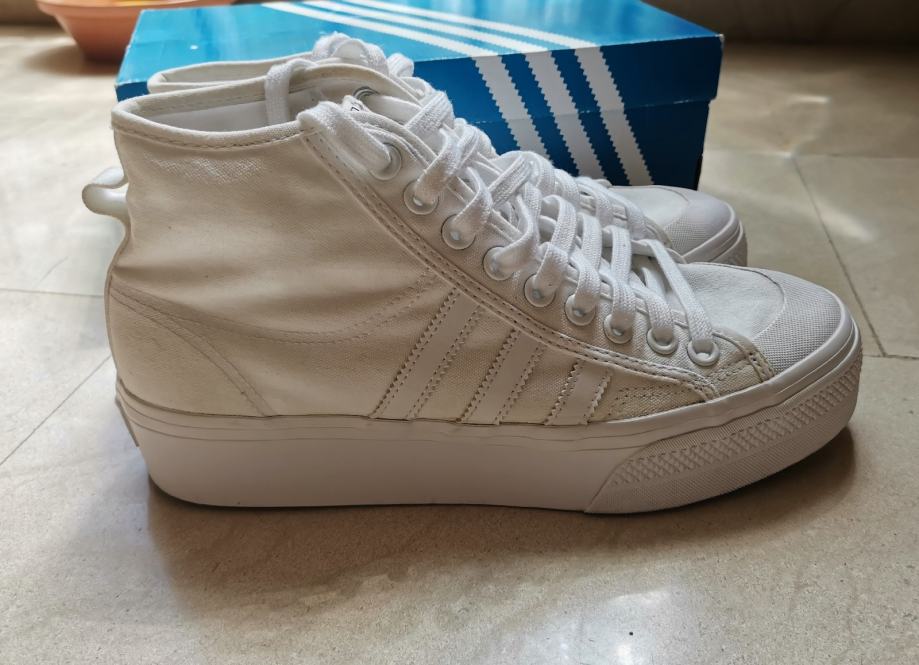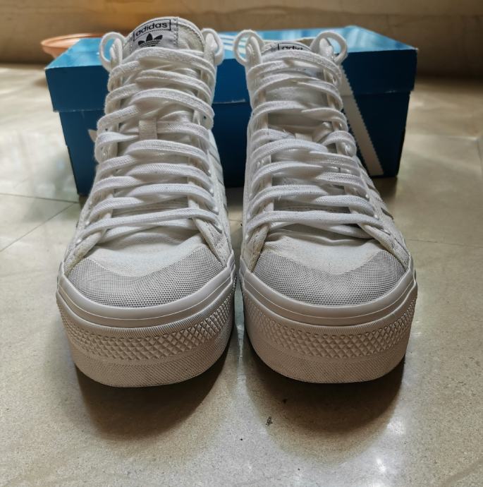 Adidas Originals Nizza platform, vel 43 1/3, gazište 28cm, materijal nije čisto bijel kao kod novih, ipak su nošene ali vrlo dobro očuvane.