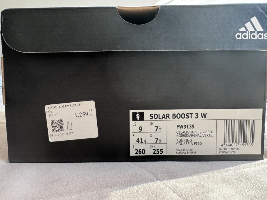 Prodajem 2x koristene tenisice za trčanje Adidas SOLAR BOOST 3 W kupljene u Intersportu i davno zaboravljene u ormaru. Prodajem jer sam u 2 koristenja shvatila da su mi pretijesne/premale. Velicina je EU 41 i 1/3 i odgovara duljini stopala od 25.5 cm!