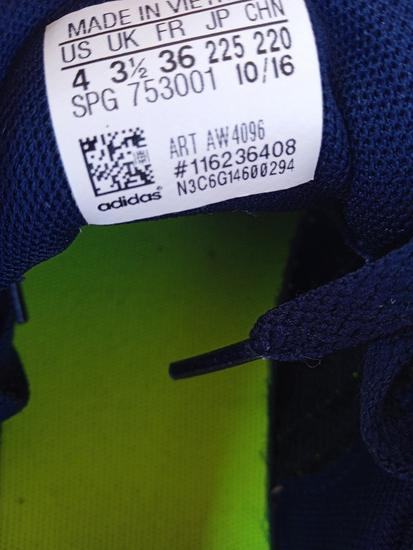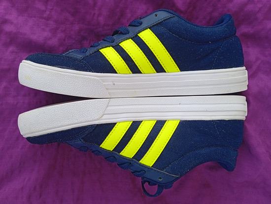 Kratko koristene tenisice.36 velicina.tkanina.tamnoplave boje sa fluorescentnim zutozelenim Adidas znakom.mogu biti i za djecu i odrasle