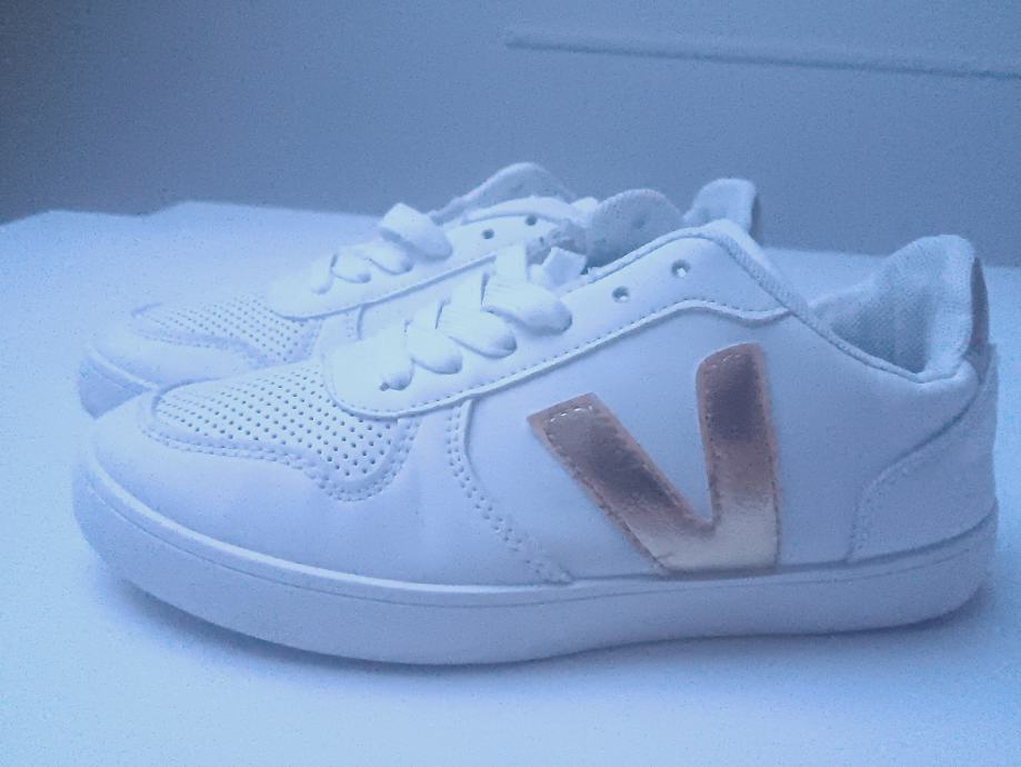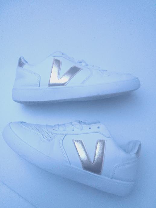 Bijele niske tenisice like Veja 36 oprane i spremne za novu vlasnicu, kod vezica malo otišao materijal zoomirana slika cijena prilagođena