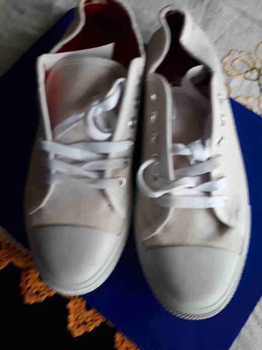 Nove bijele tenisice broj 42, udobne za nošenje, bijelo bež