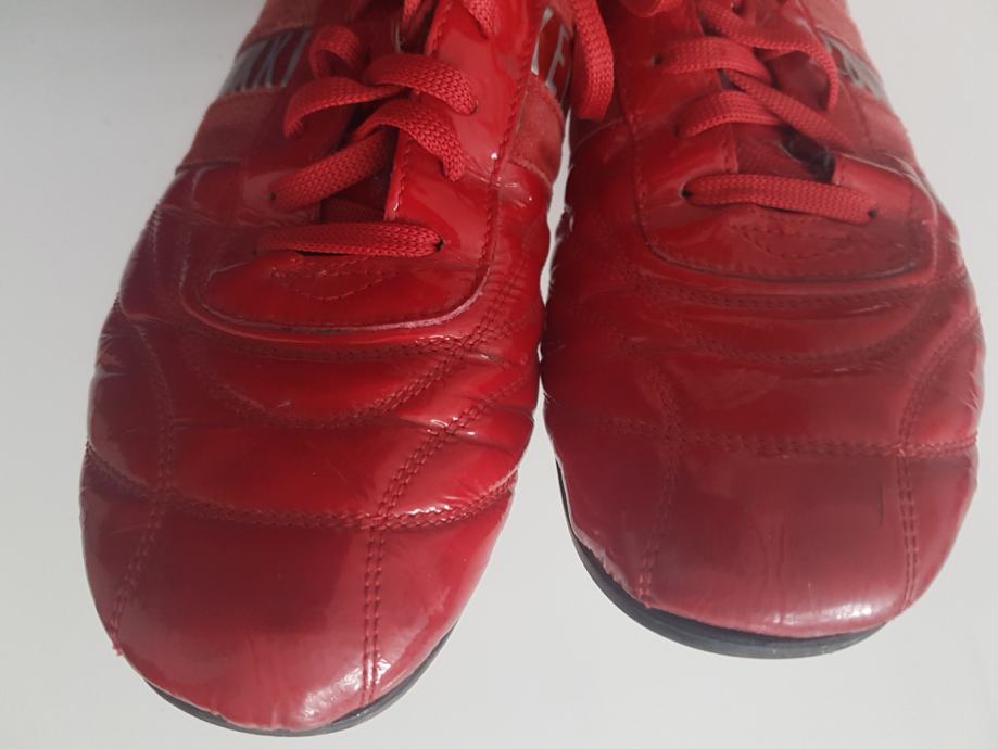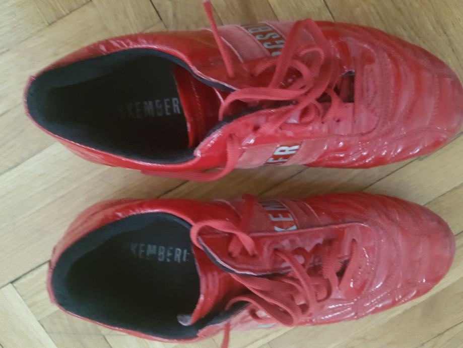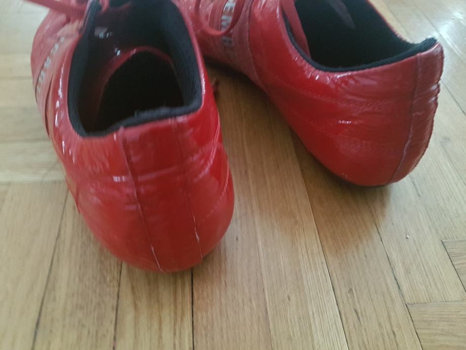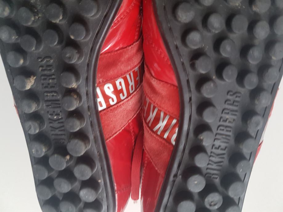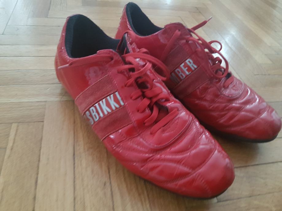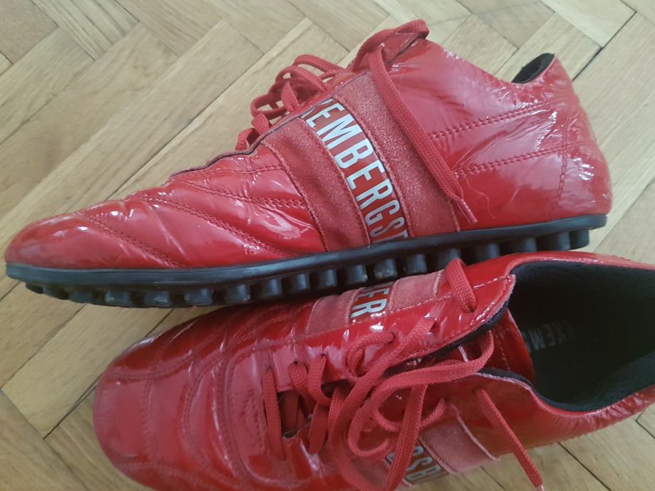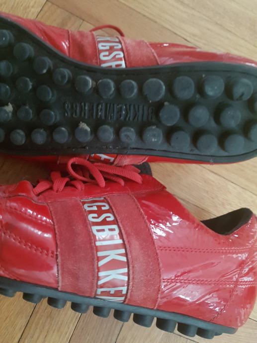 Žarko crvene tenisice lakirane broj 39 brenda BIKKEMBERGS , jako očuvane i izuzetno atraktivne placene 1500 kuna , tenisice su 100% original nikakva kopija replika i sl. napravljene od prave čiste lak kože - potplat sirova guma čepići od čiste gume anatomski uložak , jako udobne i kvalitetne. stanje vrlo - vrlo dobro