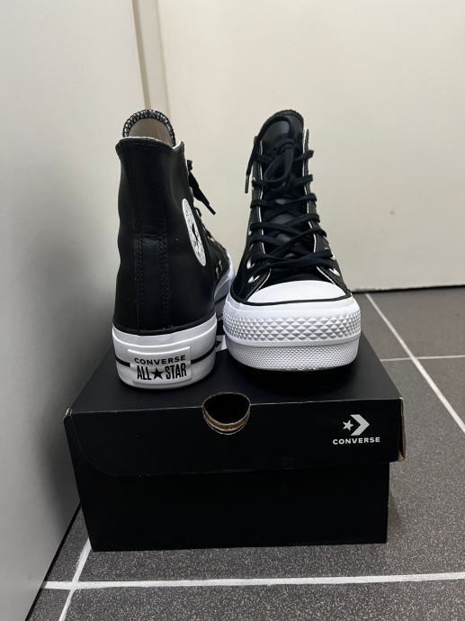 Converse visoke kožne tenisice s platformom. Broj 37,5. Razlog prodaje je pogrešna veličina. Plaćene 720kn. Kupljene u Converse trgovini