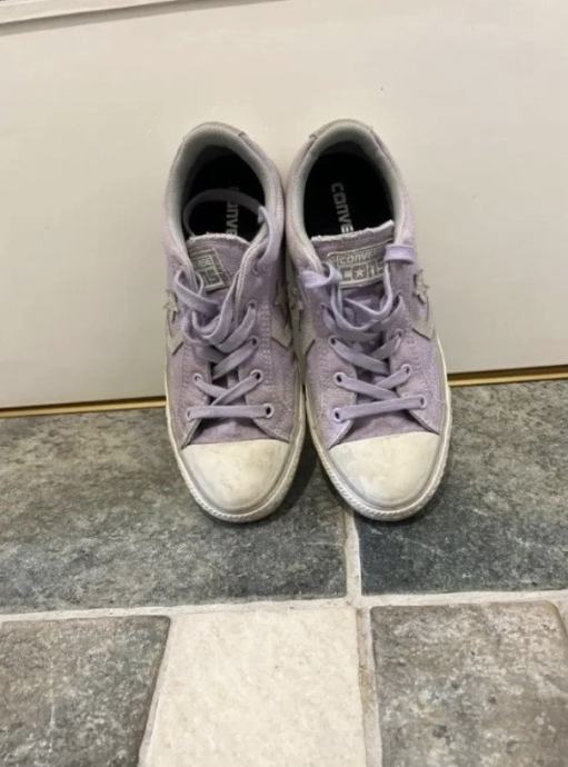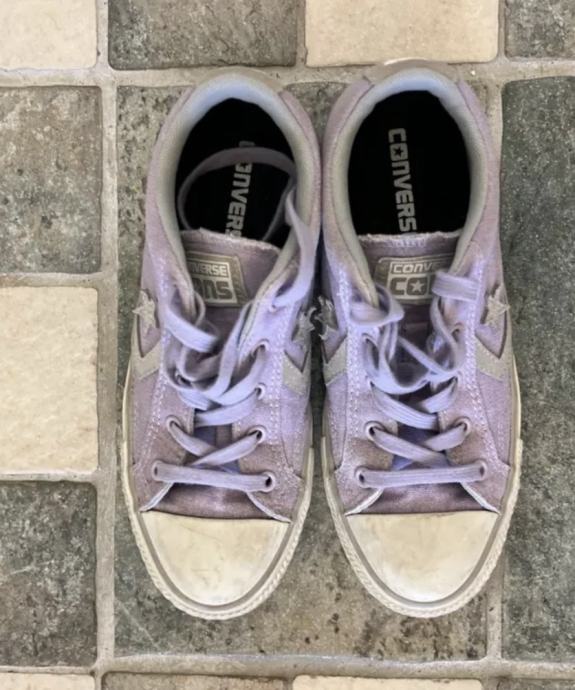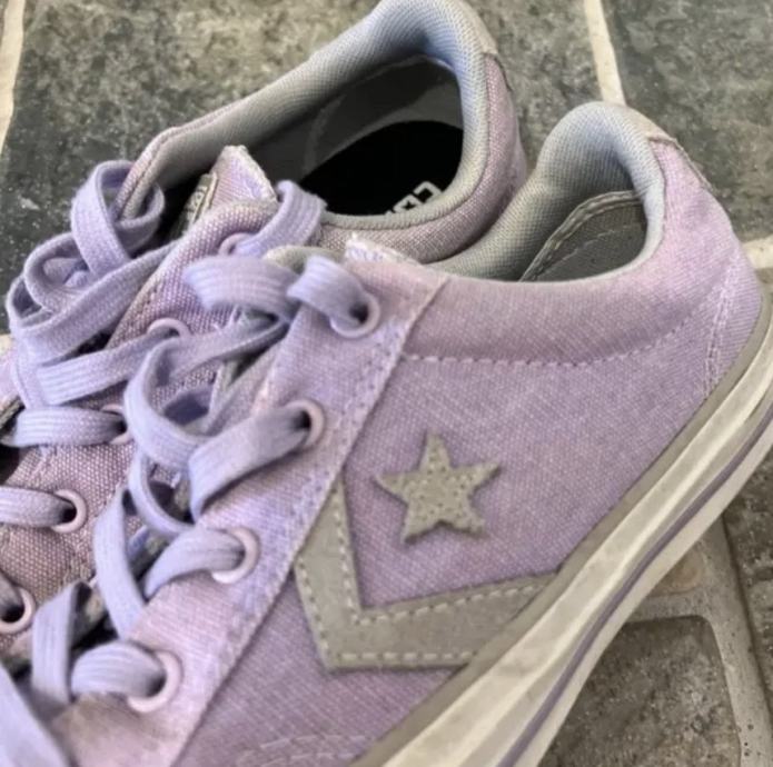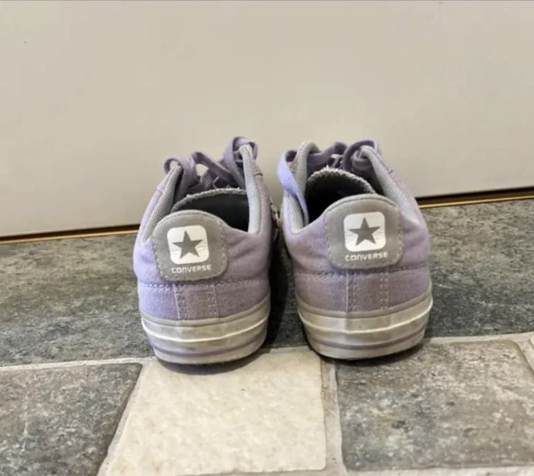 Ove ljubičasto-krem Converse tenisice savršene su za dodavanje daška boje bilo kojem stilu - ležernom, street ili mekom grunge stilu. Malo nošene, ali super udobne i spremne za vaše dnevne avanture.