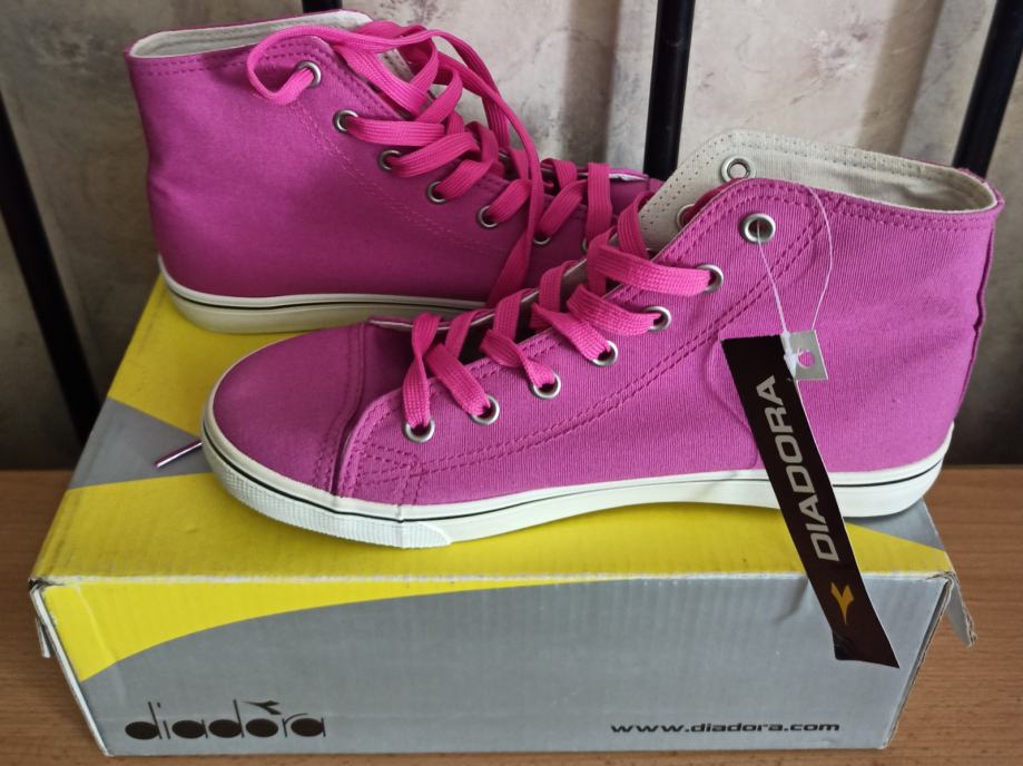 DIADORA ORIGINAL ZENSKE VISOKE PLATNENE TENISICE , BOJA CIKLAME. JAKO FINE I UGODNE ZA NOSENJE, SUPER UDOBNE. IDEALNE ZA PROLJECE,MODEL 2020G. ORIGINAL DIADORA. KUTIJA,ORIGINALNO PAKIRANJE,CERTIFIKAT AUTENTICNOSTI. VELICINA 38 , 40. CIJENA 160 KUNA. MOGUCNOST PLACANJA POUZECEM.
