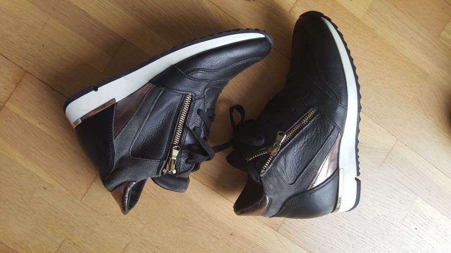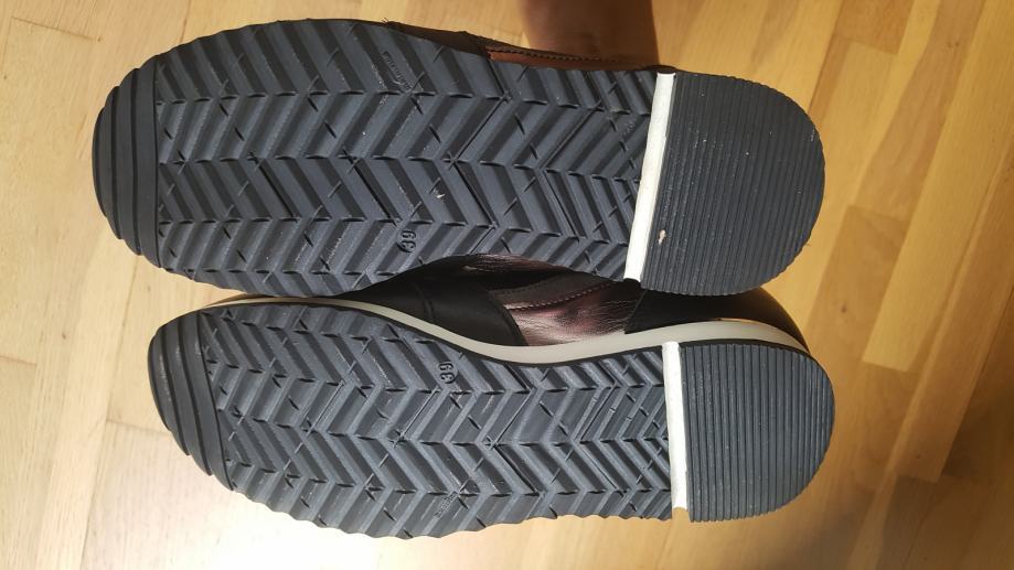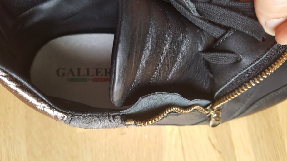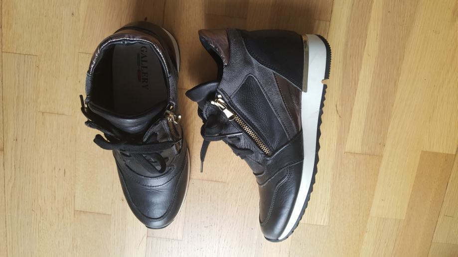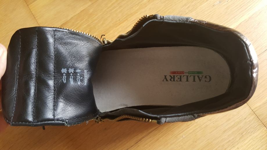 Prodajem jednom nosene dizajnerske kozne cipele GALLERY br 39, duzina unutarnjeg gazista 25.cm, visina pete 6 cm (unutra je povisena peta ) prava koza izvana i iznutra , kvalitetni djonovi, preudobne i vrlo kvalitetne