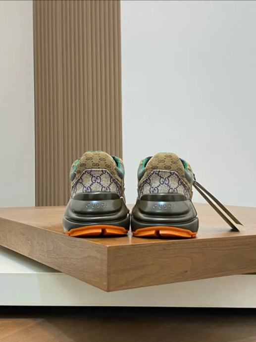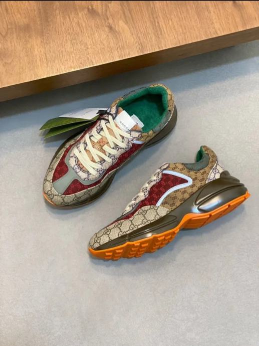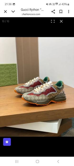 Prodajem potpuno nove Gucci tenisice s originalnom etiketom koje još nisu nošene. Ove ekskluzivne tenisice s prepoznatljivim GG uzorkom i crvenim detaljima savršene su za svaki modni outfit. Unutrašnjost tenisica je u zelenoj boji dok potplat ima karakterističan narančasti detalj koji dodatno naglašava prepoznatljiv Gucci dizajn. Svi brojevi su na stanju