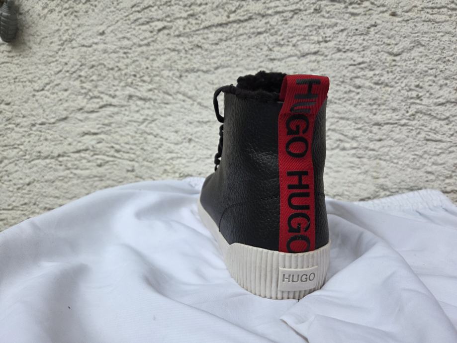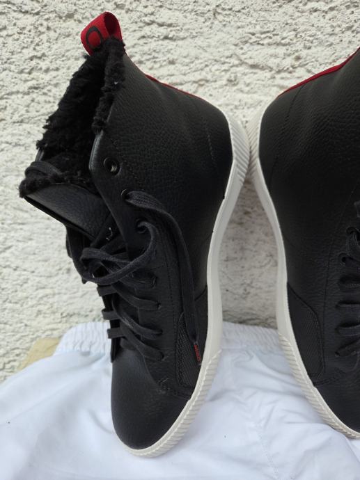 Hugo Boss tenisice/gležnjače original EUR 41 sa unutarnjim gazištem 26 cm....eksterijer prava koža/ interijer krzno...ravni , lakši, 25 mm đonovi....plaćene 210 eura, sasvim kratko nošene , bez tragova korištenja na koži i đonovima...pogledajte i ostale moje oglase