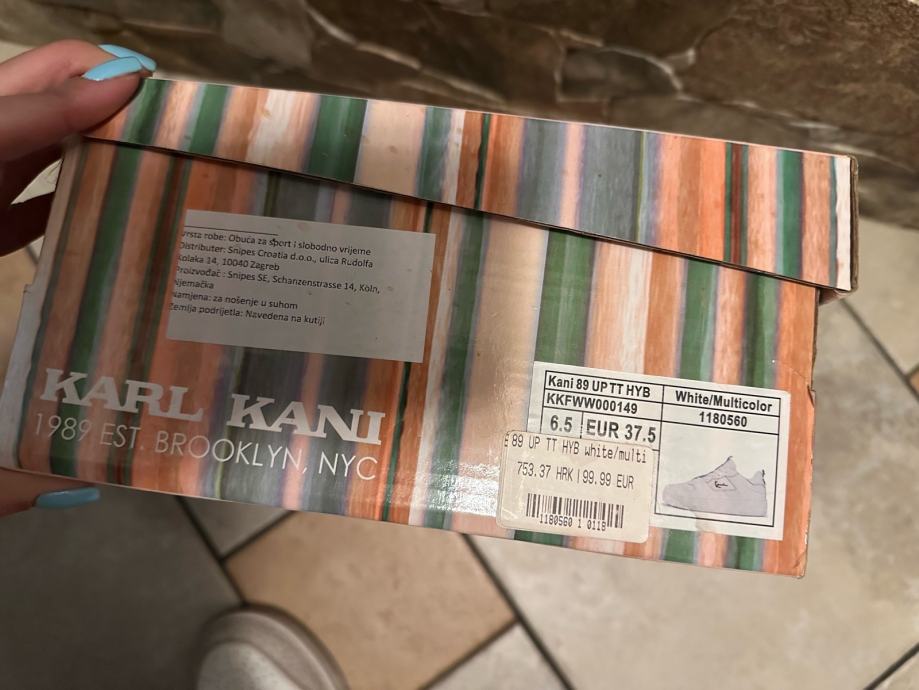 Karl Kani ženske tenisice broj 37.5, tenisice su kratko nošene, ocuvane kao što se vidi na slikama te nigdje nemaju oštečenja ili tragova korištenja