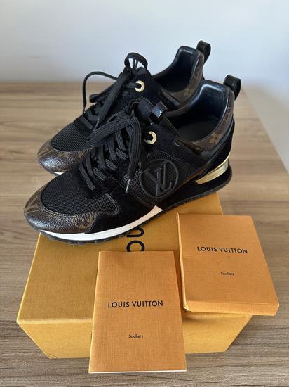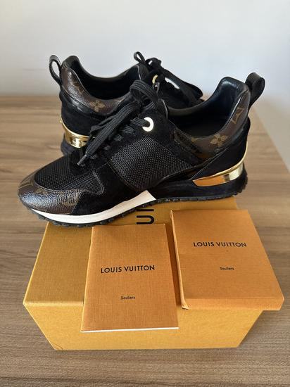 Prodajem vrlo lijepe, original tenisice Louis Vuitton Run Away. Bile su koristene samo 2 puta, jos uvijek su kao nove, bez traga koristenja. Uz tenisice dolazi pripadajuca kutija i dodatne vezice. Za vise info i slika tu sam za vas. Nisam za zamjene i molim vas, da se jave samo ozbiljni kupci.