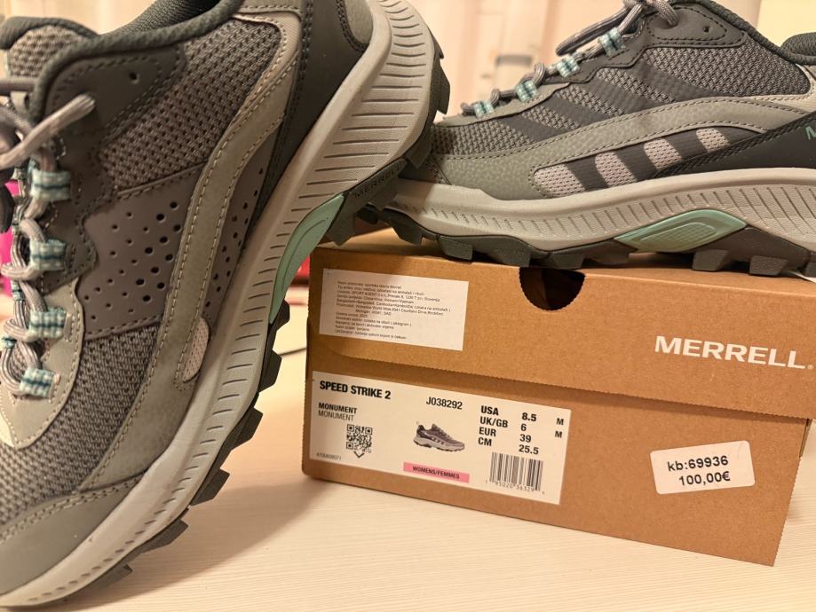 Nove Merrell ženske tenisice. Broj 39 (dužina gazišta 25,5cm). Greškom kupljen krivi broj. Moj broj je 39, ali dužina gazišta 25cm. Mislila sam da ce biti u redu, meðutim kada sam ih prvi put obula i izašla van shvatila sam da su prevelike. Tek kod dužeg hodanja sam shvatila da mi noga klizi, zato prodajem u pola cijene 50eura. Za one koji mozda ne znaju za Merrell, to je američki proizvodjač obuće koja se odlikuje izrazitom udobnosti, kvalitetom i dugotrajnosti obuće. Tko se navikne na njihovu udobnost teško se može mjeriti s drugim tenisicama.