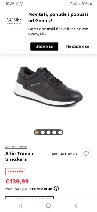 Iznimna opcija od Michael Korsa - tenisice s vezicama. Podstava od mekane tkanine, jastučić za petu obrubljen eko kožom. Metalni detalji u srebrnoj boji dodaju šarm i stil cjelini. Dizajnirane za sve žene koje cijene jedinstvenost i udobnost.