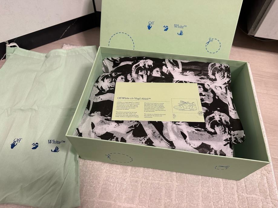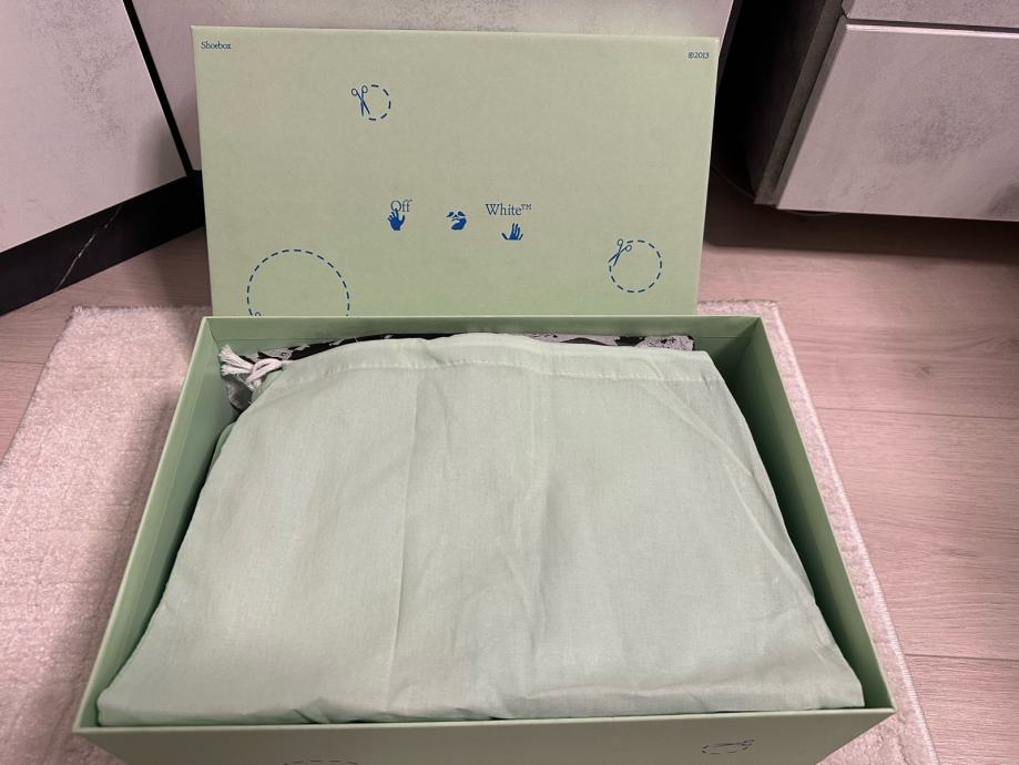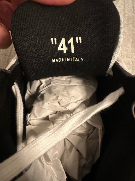 Prodajem OFF WHITE ženske tenisice u veličini 39, potpuno nove s etiketom. Tenisice su u crno-bijeloj kombinaciji s prepoznatljivim OFF WHITE dizajnom i karakterističnim detaljima brenda. Dolaze u originalnoj ambalaži sa svom pratećom dokumentacijom.