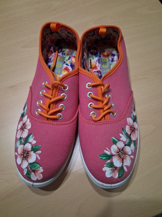 Preslatke ženske tenisice sa cvjetnim detaljima (ručni rad,unikat) za proljeće,ljeto...vel 40,novo.