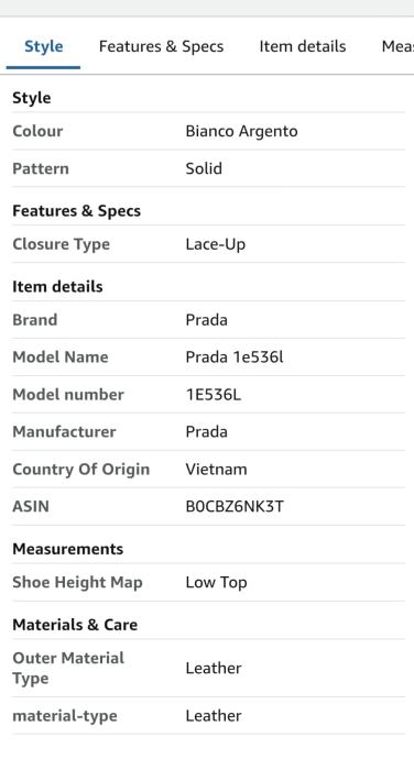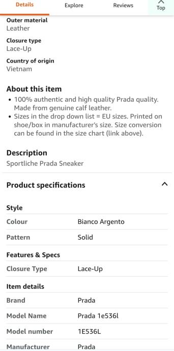 Sve očuvano osim što se jedan dio srebrne boje u ograničenom stražnjem dijelu skupa sa bijelim Prada logo koji je bio na tom dijelu obrisalo.