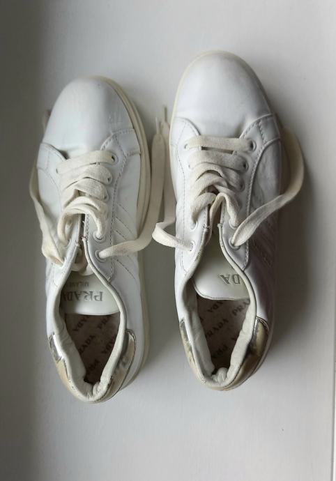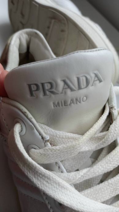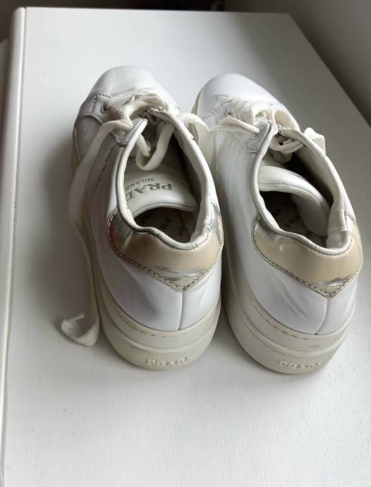 PRADA MACRO Downtown Bold Platform Sneaker White Leather br. 38 Maksim