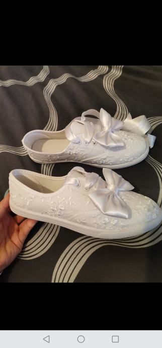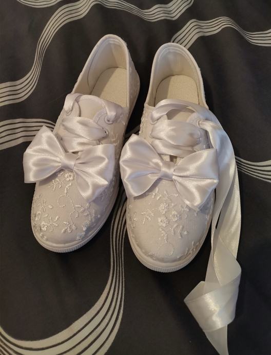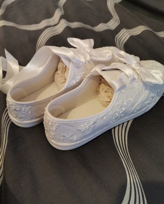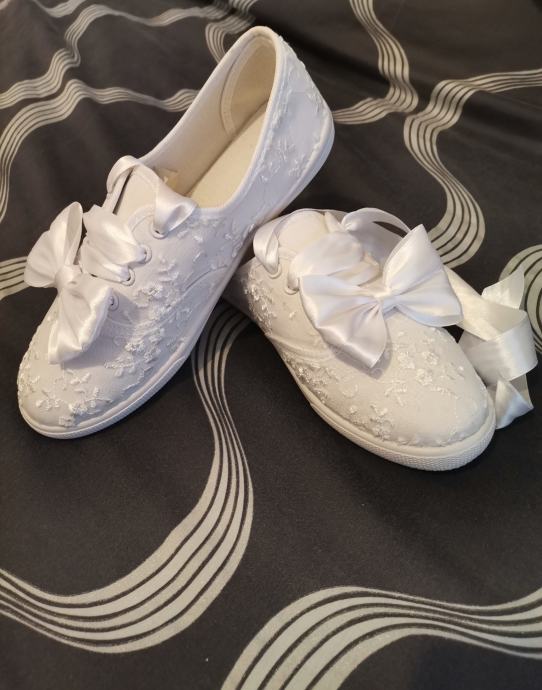 Prodajem čipkaste tenisice sa mašnom, nikad nošene, meni su nažalost male, a sebi sam uzela broj veće.