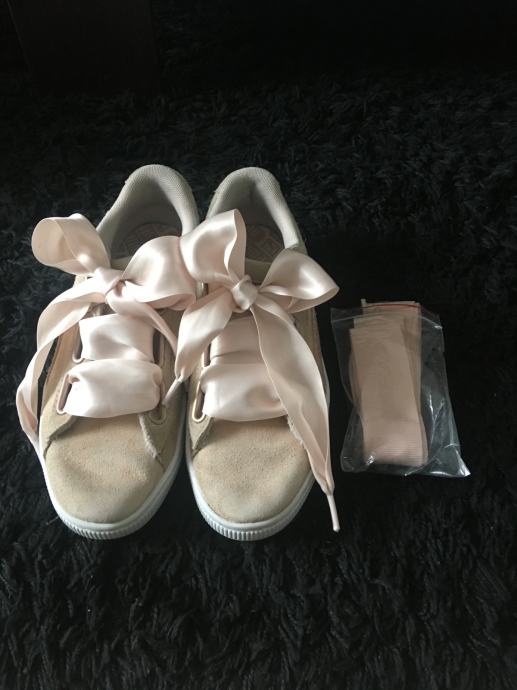 Prodajem Puma Suede Heart satin model tenesice, boja roza, broj 36 sa dvije vrste vezica.