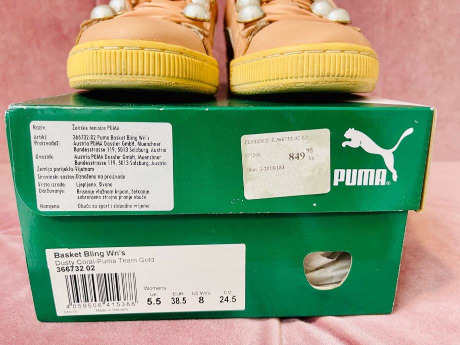 Prodajem prekrasne Puma ženske tenisice u veličini EUR 38,5 u original kutiji. Odgovaraju unutarnjem gazištu 24,5-25. Obučene par puta i očuvane maksimalno. Nemaju nikakvih oštećenja, poput novih. Plaćene 115€.