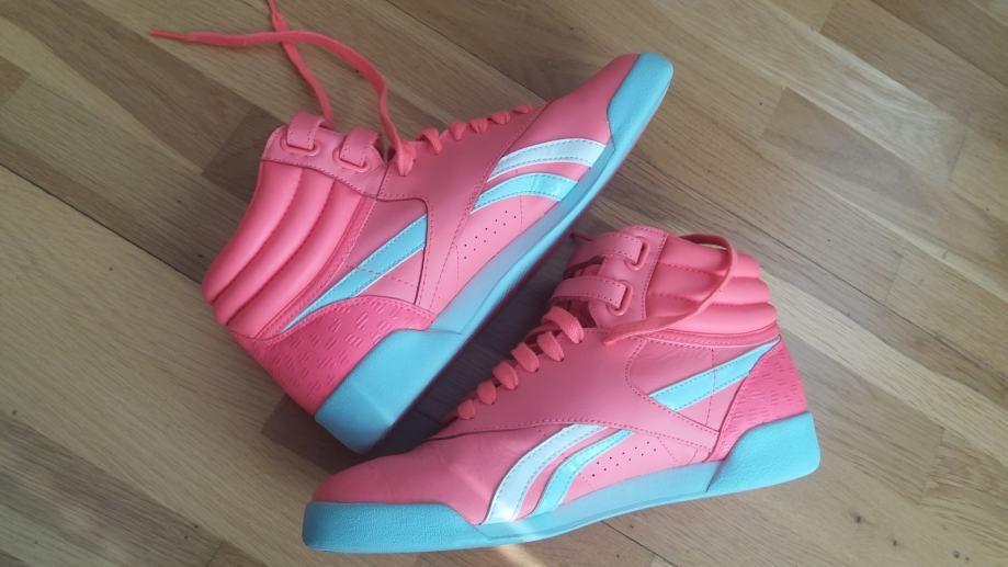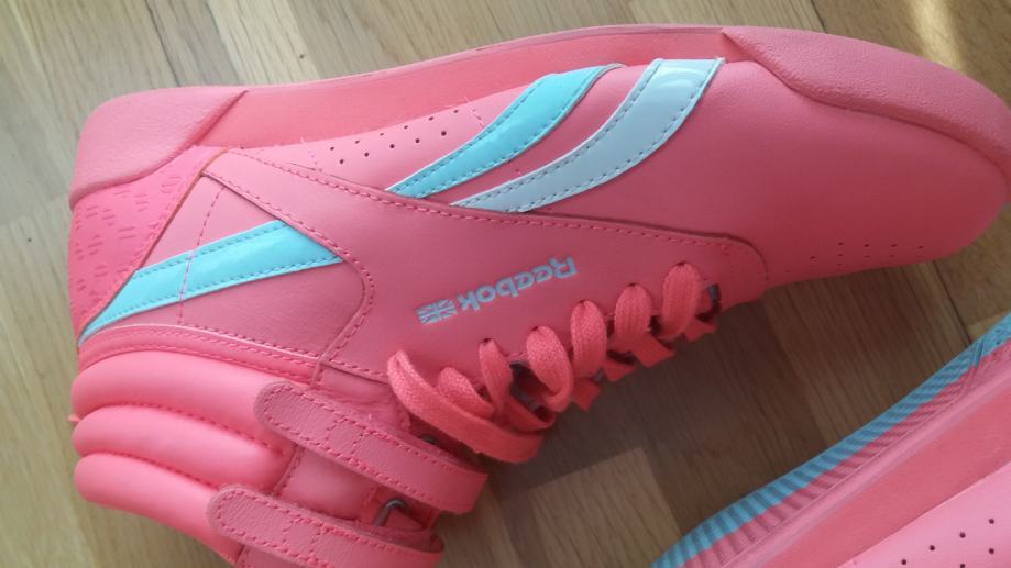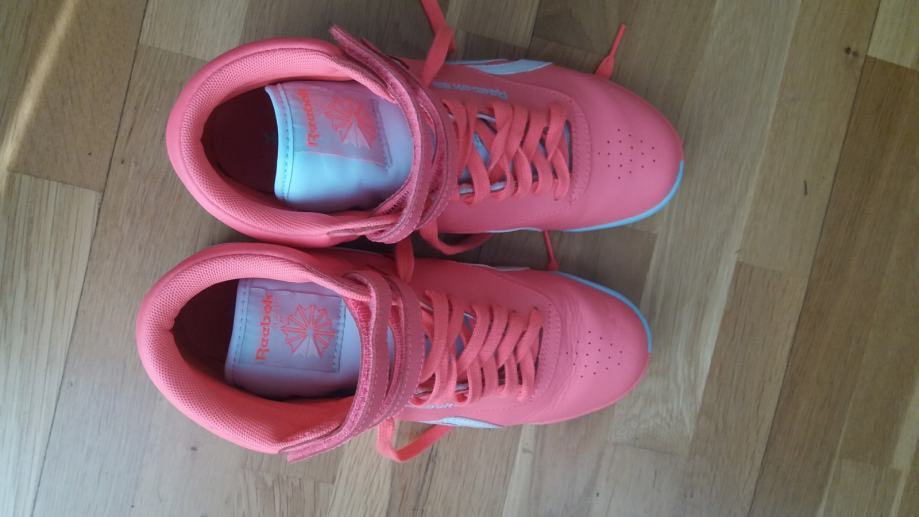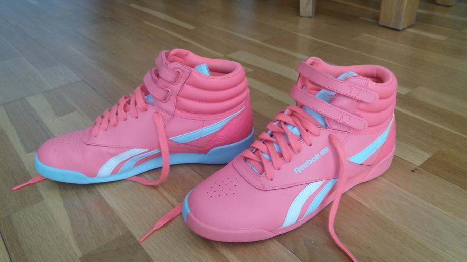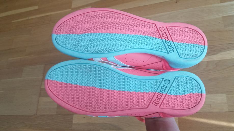 Prodajem jednom nosene tenisice Reebok br 38, duzina unutarnjeg gazista 24.5 cm, prava koza , kupljene premale , kao potpuno nove , prekrasna ruzicasta boja, vrlo kvalitetne
