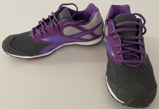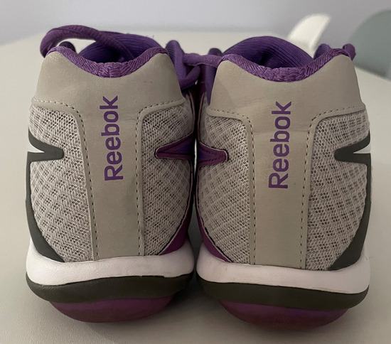 Prodajem Reebok Slimtone sportske tenisice. Tenisice su praktički nove, obuvene svega nekoliko puta u dvorani. Broj je 37 (EUR 37, USA 6,5, UK 4, CM 23,5), boja siva sa ljubičastim detaljima. Na đonu postoje izbočenja u predjelu pete i prstiju što tenisice čini izrazito udobnim i pogodnim za bolna stopala.