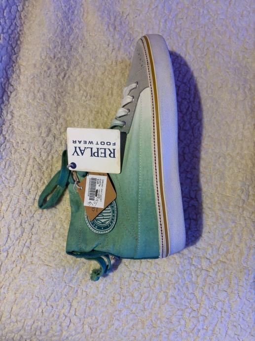 Potpuno nove REPLAY tenisice u zelenoj boji, nikada nošene, još uvijek s etiketom. Veličina 42 s niskom petom od 2 cm, idealne za svakodnevno nošenje. Originalno pakirane u autentičnoj REPLAY kutiji.