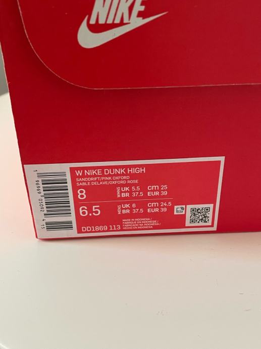 Tenisice Nike Dunk High, veličine EUR 39, nošene 2 puta u izvrsnom stanju sa minimalnim tragovima nošenja.