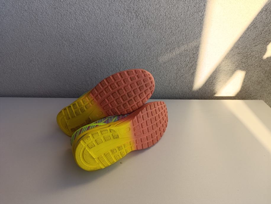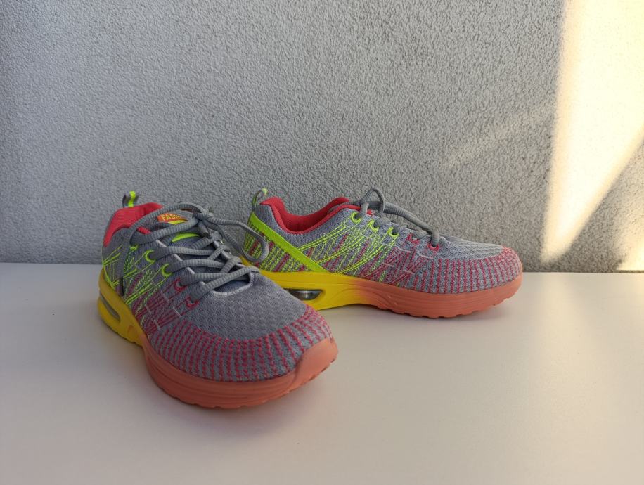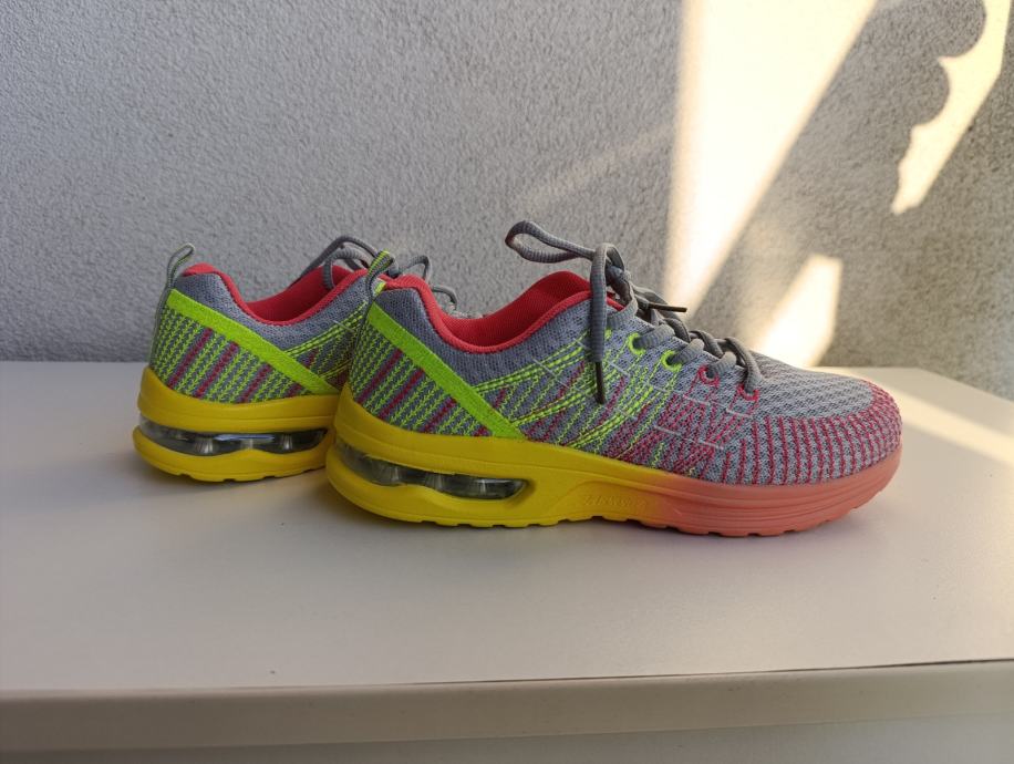 Prodajem šarene ženske tenisice veličine 39 s petom od 2 cm koje su malo nošene. Udobne tenisice sportskog dizajna u kombinaciji sivih, žutih, zelenih i narančastih nijansi idealne su za svakodnevno nošenje. Gornji dio od prozračnog materijala osigurava udobnost tijekom cijelog dana.