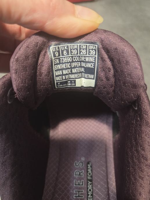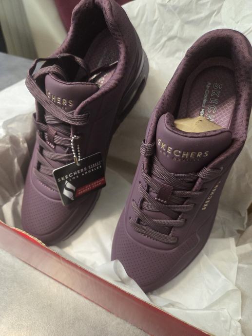 Nove ženske tenisice marke Skechers UNO, tamno ljubičaste boje, EUR br.39 (UK6, CM26, USA9), sa tabanicom od memorijske pjene, prodajem jer su mi premale. Nosim takve godinama i preporučam kao najudobnije, a izvrsne za sve vremenske prilike i dovoljno tople čak i za zimu.