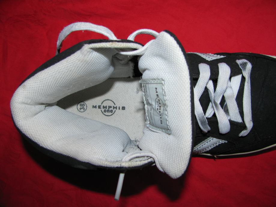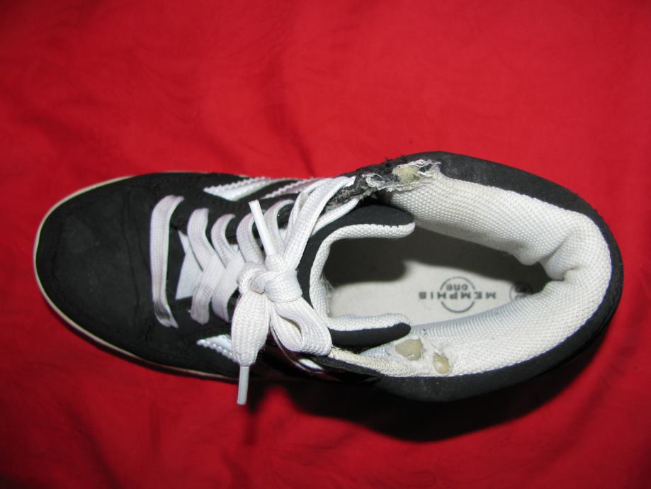 Nošene, na lijevom gornjem rubu vidljivo manje oštečenje na debljem djelu tenisice. (vidljivo na slici)