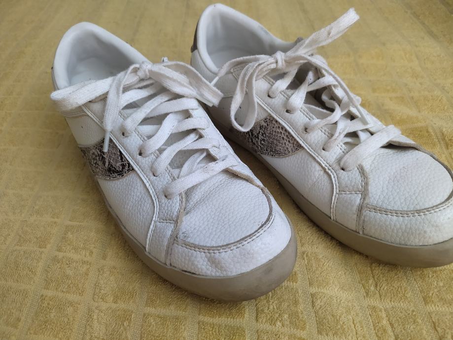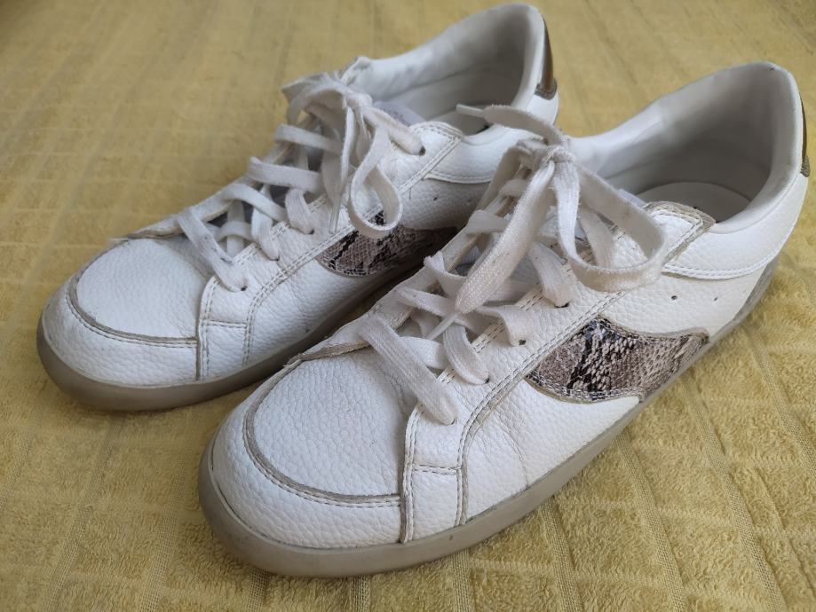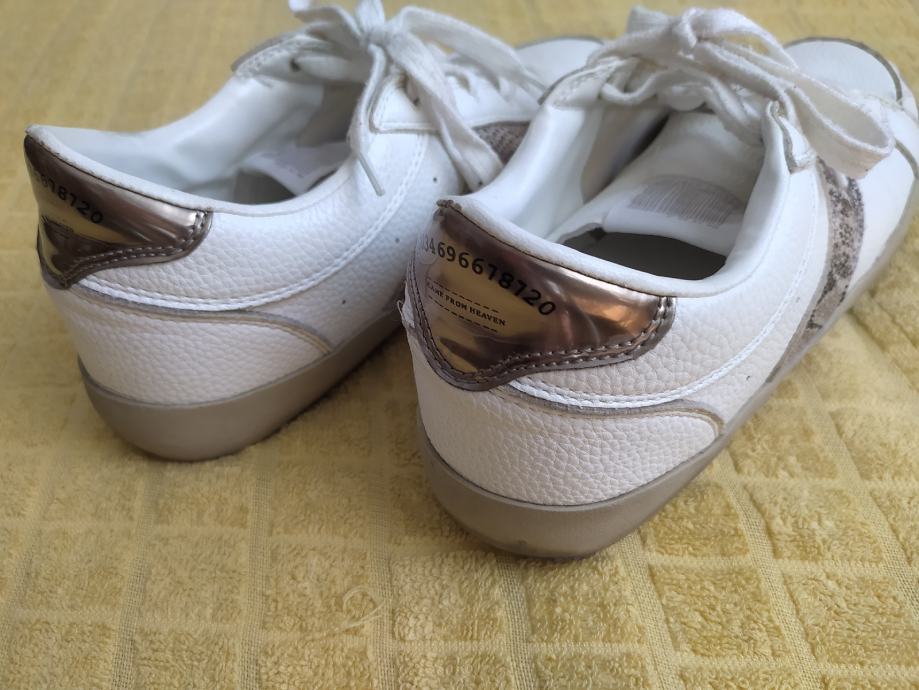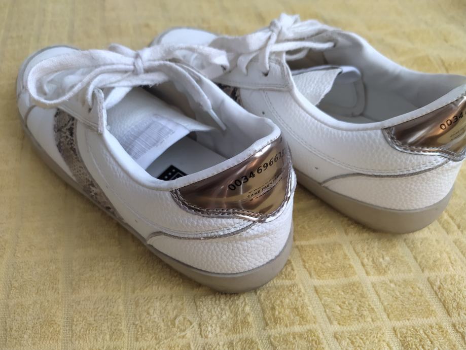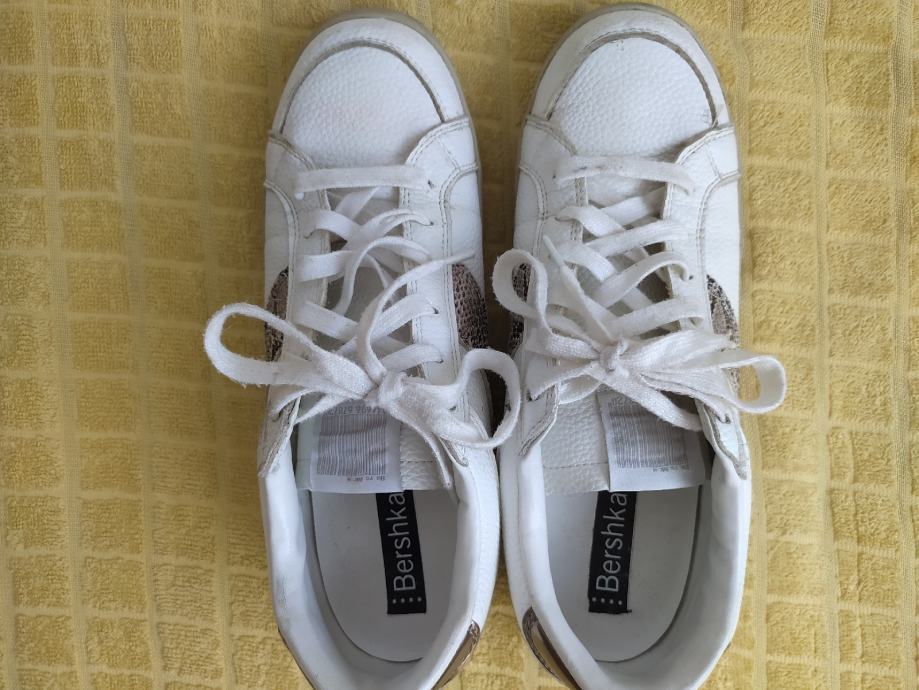 Tenisice ženske "Bershka" br 40. Bijele boje s bež detaljima , bijela unutrašnjost, bijelim vezicama. Gornjište je od textila/gume, unutarnji dio je textil, tabanica guma. Lagane udobne patike za outdoor aktivnosti. Potpuno nove nikada nošene.