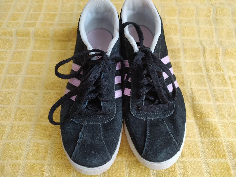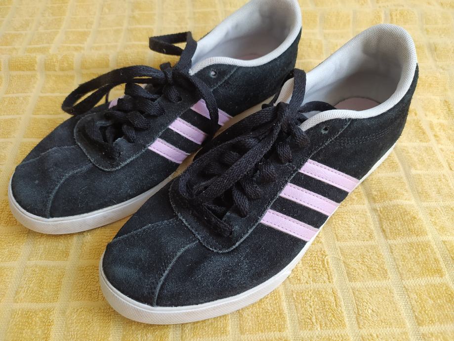 Tenisie ženske "Adidas" br 40. Crna boje s rozim adidas znakom, roza unutrašnjost, crnom vezicama. Gornjište je od kože/textila, unutarnji dio je textil, tabanica guma. Lagane udobne patike za outdoor aktivnosti. Potpuno nove nikada nošene.