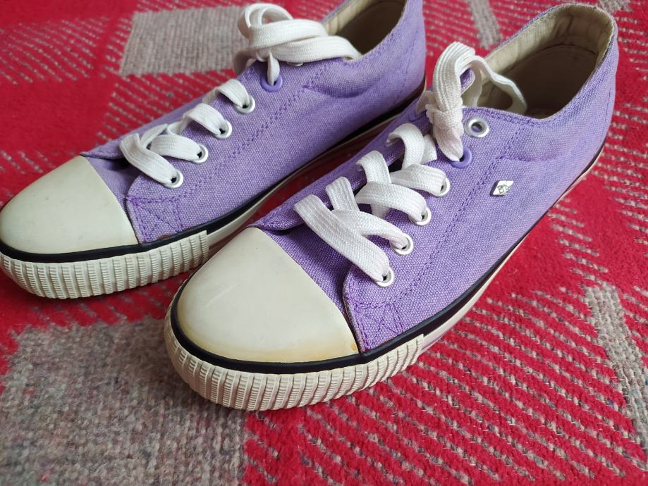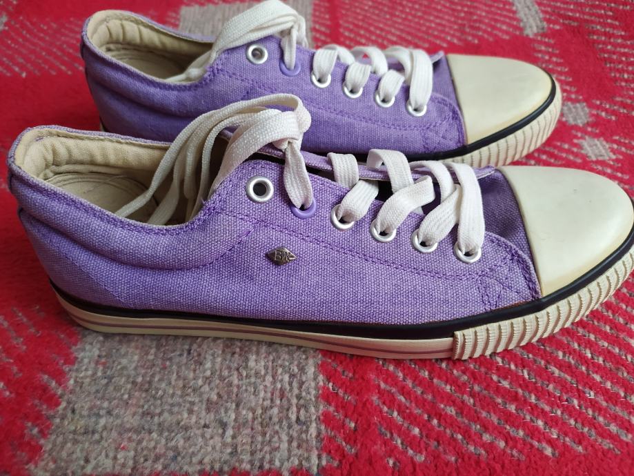 Tenisie ženske "BK" br 41nove. Bijelo ljubičaste boje s metalnim BK znakom, bijelim vezicama. Materijal kombinacija textila i gume.Lagane udobne patike za outdoor aktivnosti. Atraktivne BK tene za ljeto proljeće. Potpuno nove nikada nošene.